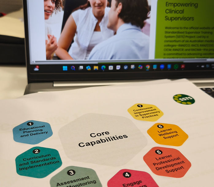 Welcome to the official website of the Standardised Supervisor Training System (SSTS) Project. Led by a consortium of six Australian medical colleges—RANZCO, RACS, RANZCOG, CICM, RANZCR, and RACMA—the project is committed to advancing excellence in medical supervision. Together, we are developing a suite of resources, including the SSTS online learning platform, to support clinical supervisors in their essential role across Australia’s healthcare system.